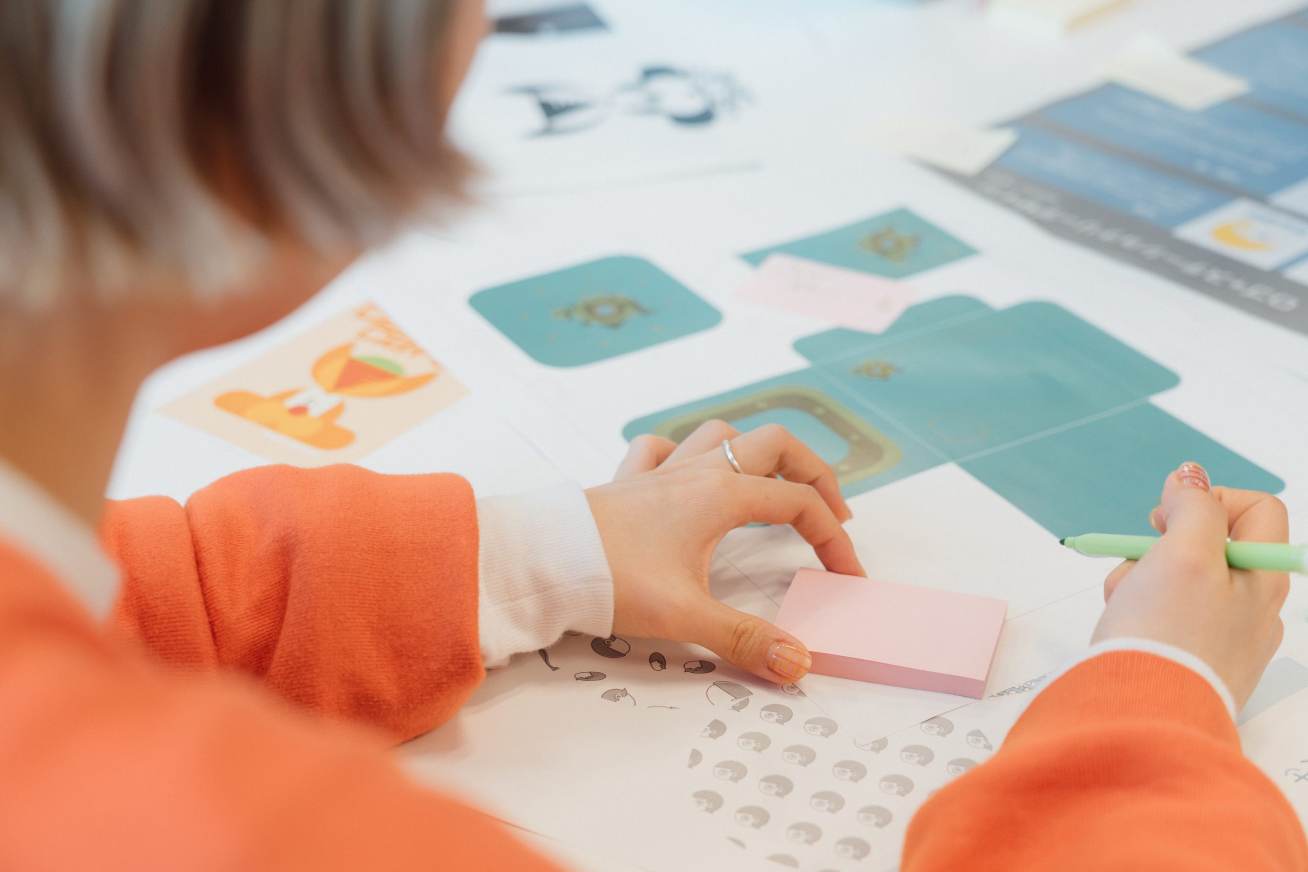IllustratorやPhotoshopをはじめとするデザインツールの使い方はもちろん、デッサン、立体造形、色彩論などを学ぶことで、平面構成や空間表現に関する理論や発想法を学びます。加えて、リサーチからコンセプト設計、ブランディング、企画立案、制作進行、広報・宣伝に至るまで、クリエイティブの制作行程を網羅的に理解することで、人を惹きつけるデザインを追究します。アートディレクター、広告プランナー、エディトリアルデザイナーなど、卒業後の活躍の場は多彩です。