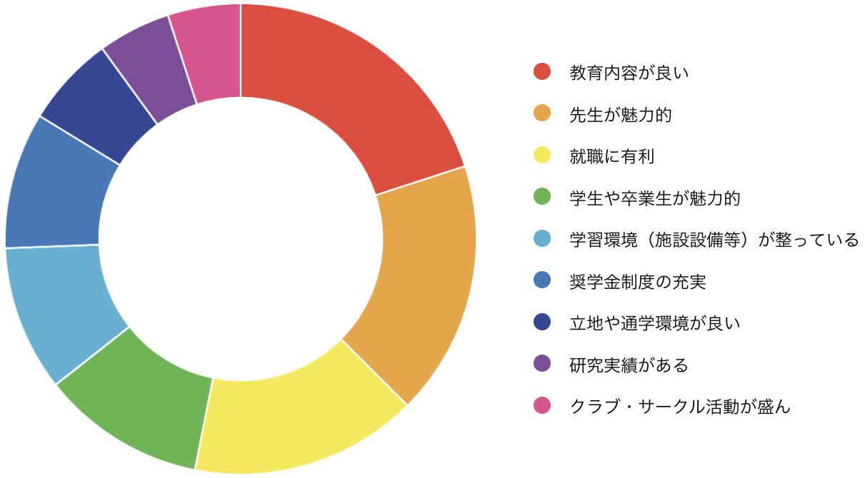 先生方が第一線で活躍されており、自分の好きな分野を学べる。立地が良いところ。