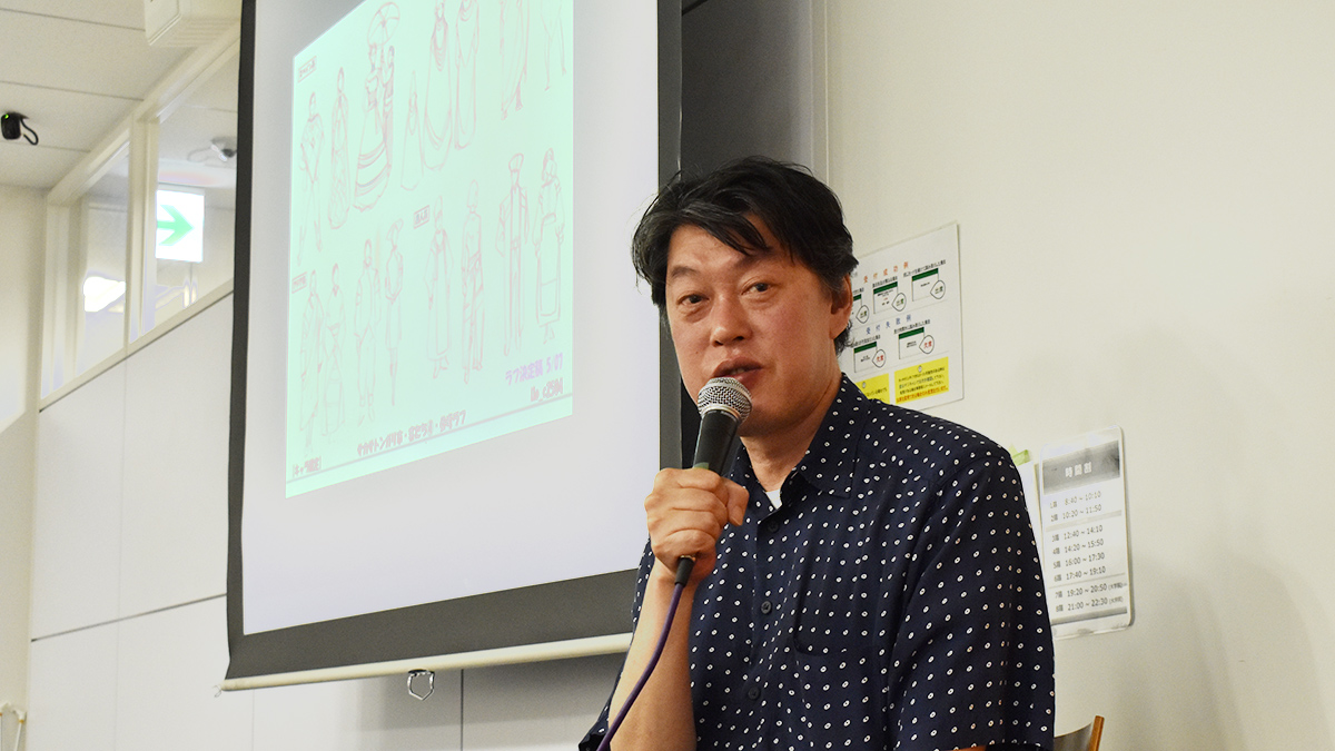 そんなイリヤ氏はキャラクターデザイナーを目指す学生たちに良いロールモデルになります。原監督の話から、イリヤ氏の長所は次のようにまとめられます。①毎日絵を大量に描くこと、②柔軟であること、③コミュニケーション能力が高く、他のスタッフとの意見交換が活発で、かつ彼らから新しいものを吸収し、仕事中の成長が早かったこと、③美術・建築など多様なジャンルを勉強していて、デザインに使えるアイディアが多かったこと。このような面を踏まえて、原監督はキャラクターデザイナーを目指す学生たちに助言をします。まずは絵を人に見せることをためらわないことです。次はアニメやゲームなど自分の好きな分野だけを見てはいけなく、自然物・芸術作品・海外クリエイターなど、多様なものに普段から触れていて、それらの特徴や描き方も工夫しておくことです。原監督は‘ミケランジェロ’‘スラブ’などのキーワード―だけでサクサク新しいデザインを描いて出したイリヤ氏の一話を話しながら、そのような「引き出し」の重要性を強調しました。