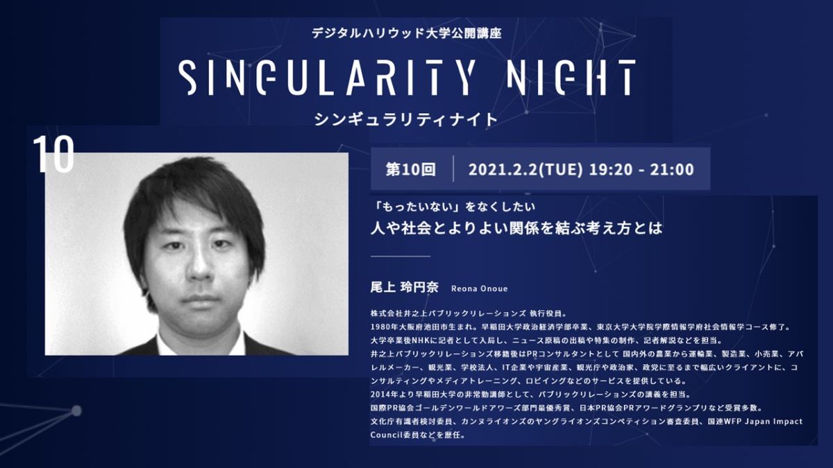 デジタルハリウッド大学では、2020年7月より今後2年間、 20回にわたり、公開講座「シンギュラリティナイト」 を開講しております。