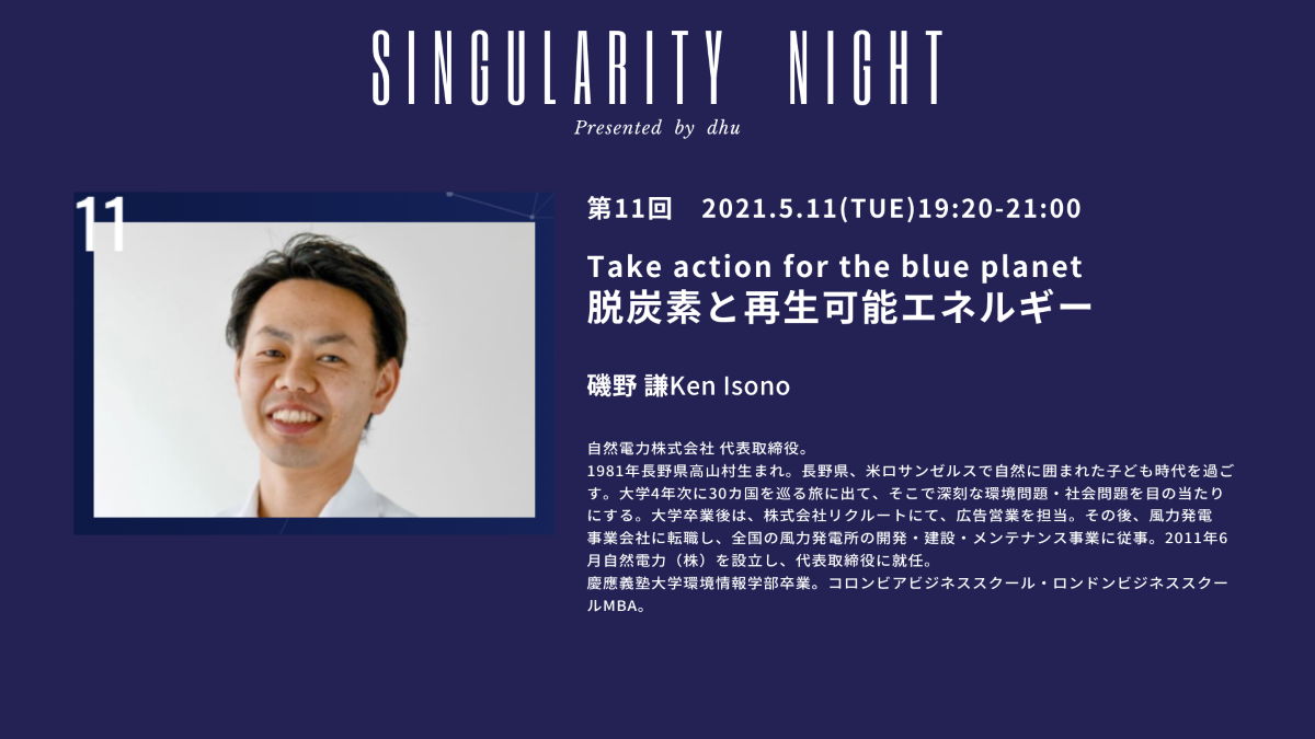 公開講座「シンギュラリティナイト」第11回 『Take action for the blue planet 脱炭素と再生可能エネルギー』