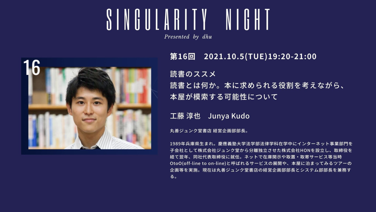 公開講座「シンギュラリティナイト」第16回 『読書のススメ 読書とは何か。本に求められる役割を考えながら、本屋が模索する可能性について』