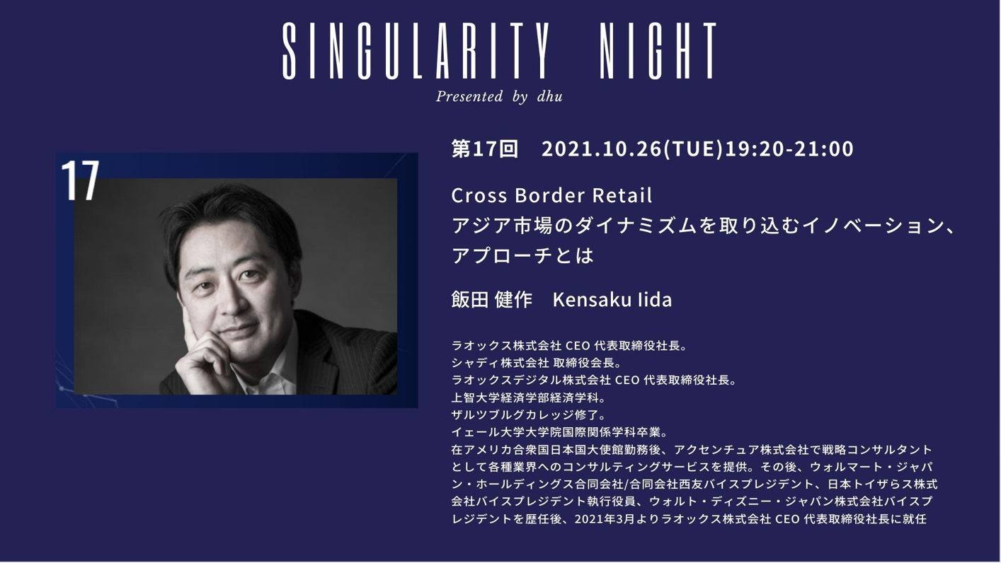 公開講座「シンギュラリティナイト」第17回 『Cross Border Retail アジア市場のダイナミズムを取り込むイノベーション、アプローチとは』