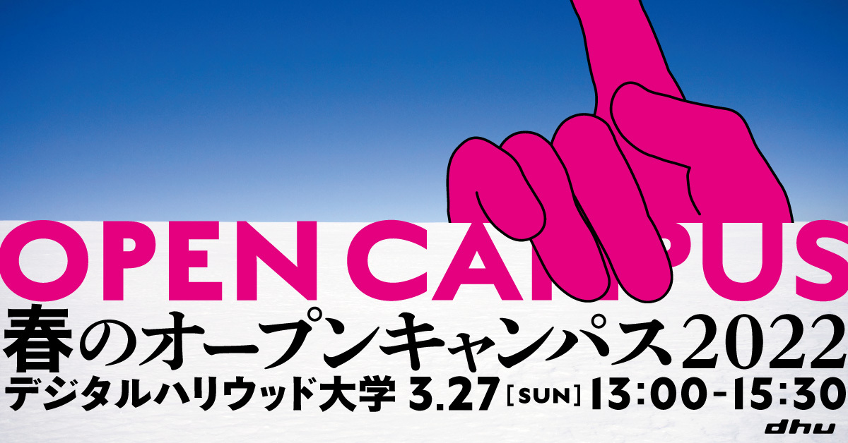 デジタルハリウッド大学(DHU)では2022年3月27日、「春のオープンキャンパス2022」を開催いたしました。2023年度入試概要の世界初公開をはじめ、進級を間近に控えた在学生によるトークセッションや4月入学予定の新入生を迎えてのQ&Aコーナーなど、フレッシュな顔ぶれによる2時間のイベントとなりました。