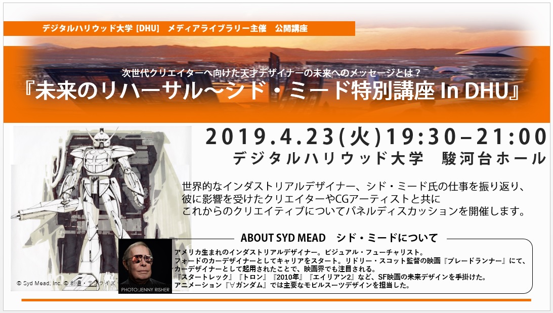 今回は、2019年4月27日(土)よりアーツ千代田3331にて開催される『シド・ミード展』に先駆け、彼の功績を辿るセミナーを開催いたします。