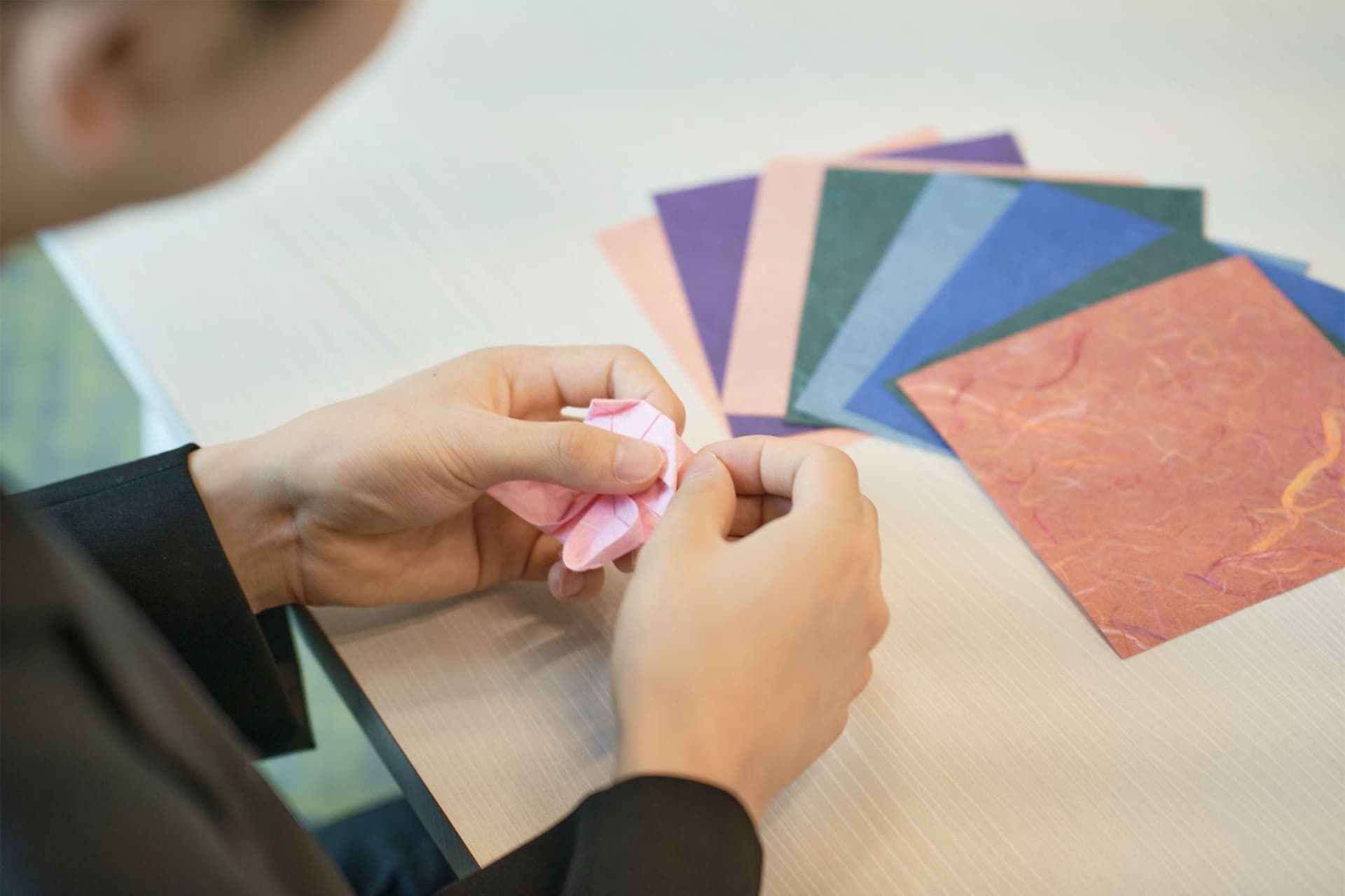 今まで身につけてきた基本形を応用して、折り方や完成形を自分で考えるんです。