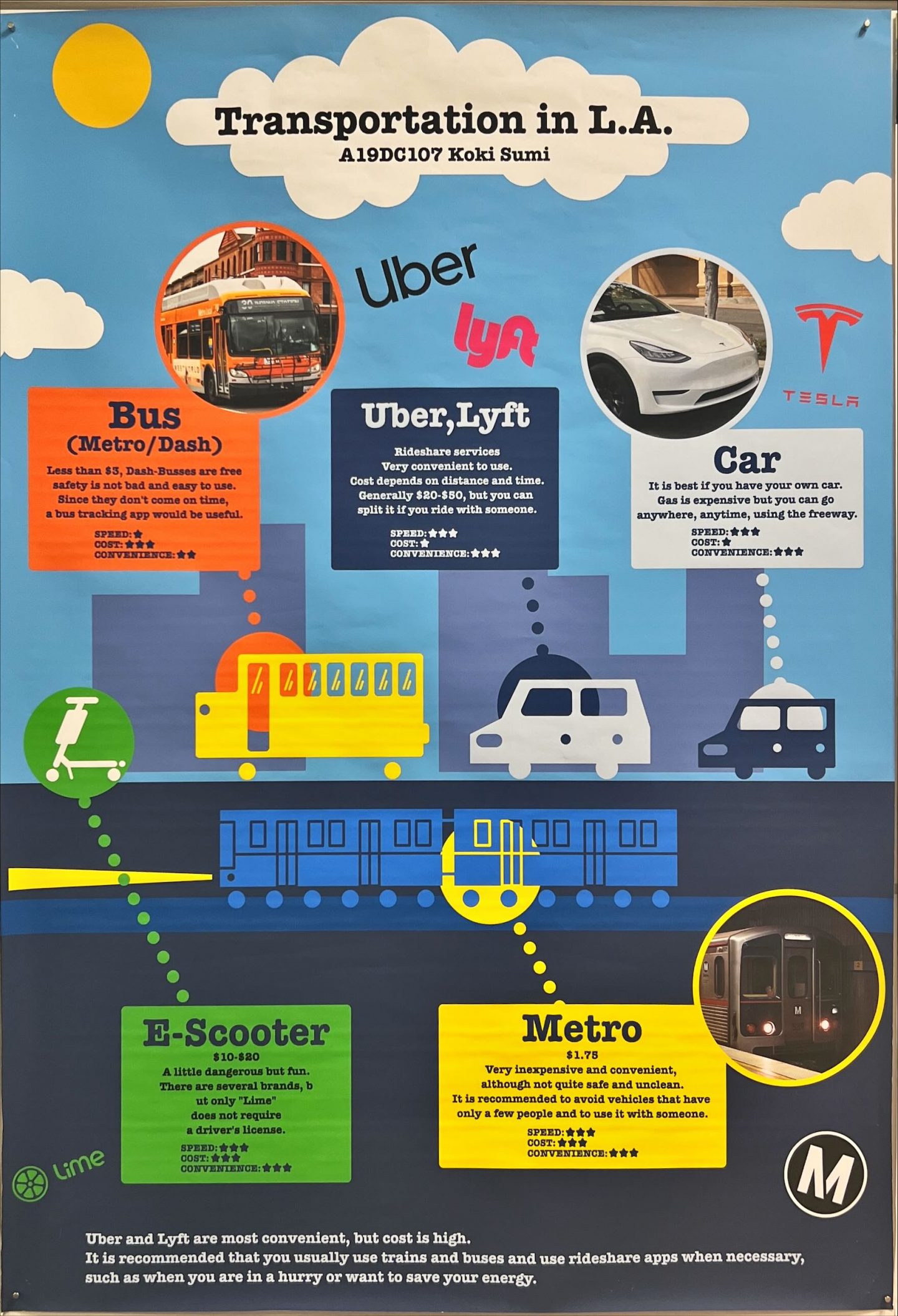 公共交通機関が発達していない車社会であるアメリカでは、地下鉄とバスを主に利用しました。治安を考えるとUberの方がいいのですがとにかく高い。これから留学に行く人の役に立つように報告レポートを作ったので是非参考にしてください(笑)