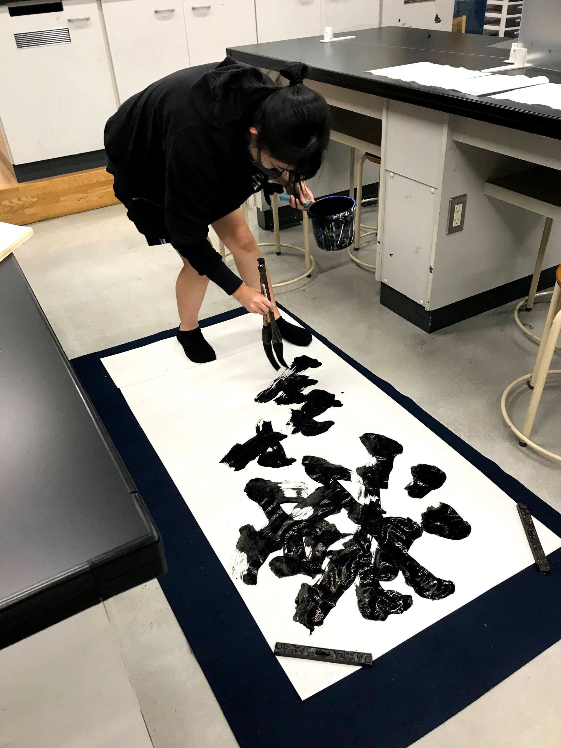 グループでは、学園祭などでパフォーマンス書道をやっていました。でも、個人的にはグループよりも個人活動の方が好き。人見知りで、自分のやりたいことを部員にうまく伝えられなかったんです。一晩中考えて伝える内容を整理しても、コミュニケーションがうまくいかないことも多くて……個人で自由に活動する方が楽しかったです。