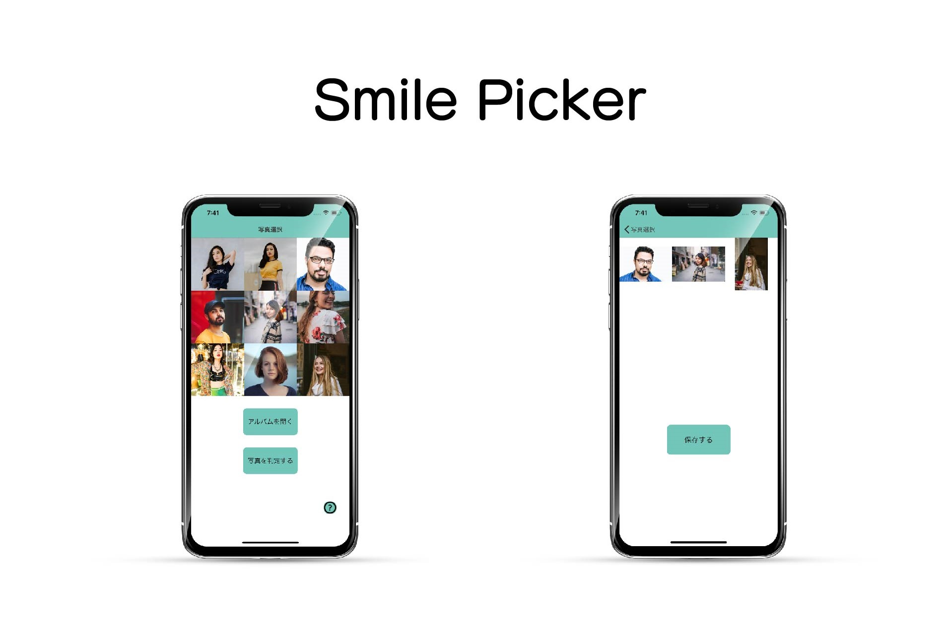 課題では、もともと自分が作りたかったアプリ「スマイルピッカー」の企画提案を行いました。スマイルピッカーは、アプリ上でスマホの写真アルバムを開いて「写真を判定する」というボタンを押したら笑顔の写真だけを選別してくれるものです。目や口の開き具合を数値化して、「事故った写真を省ける」っていう。